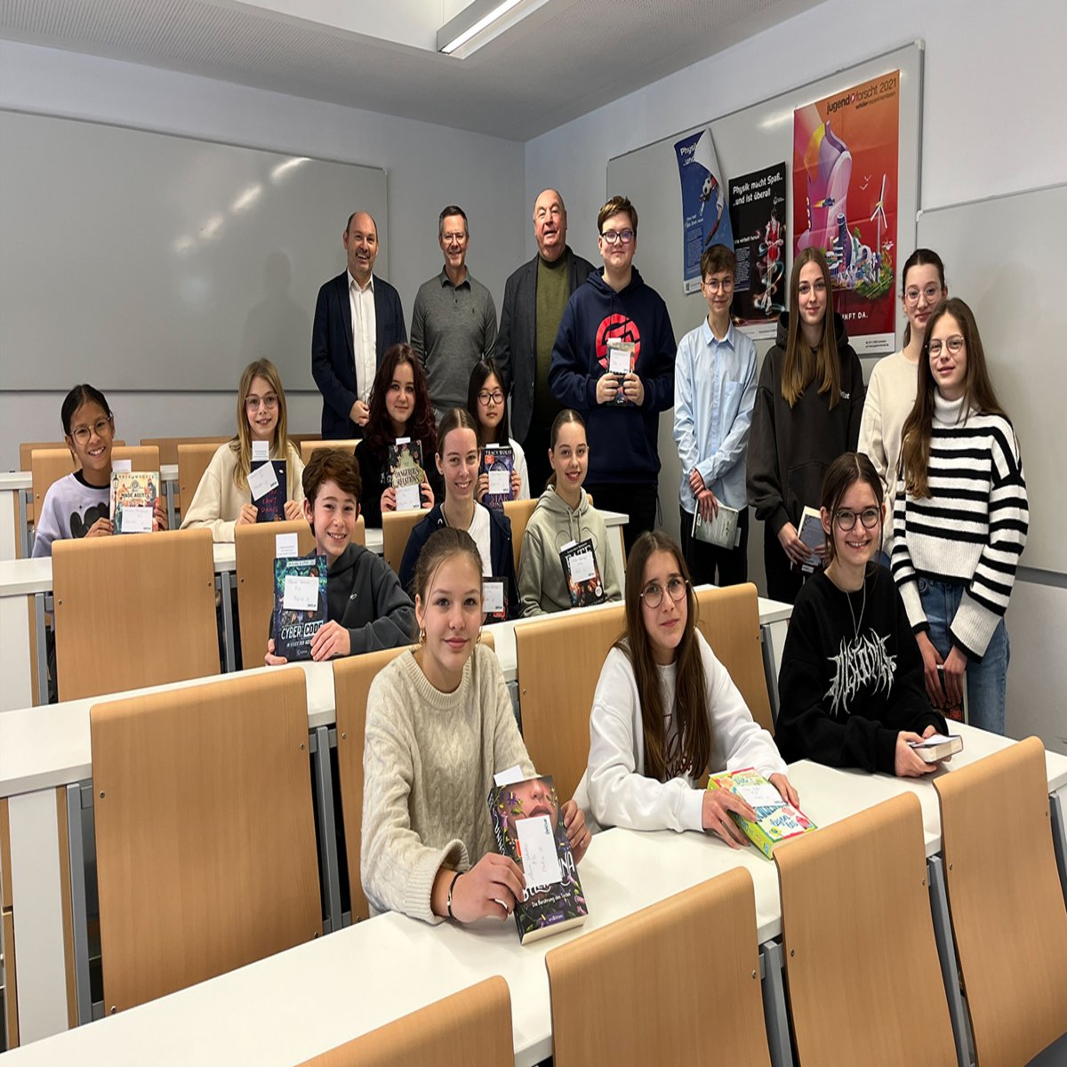 Der Buchpreis wird jedes Jahr durch die Fördergemeinschaft bereitgestellt, und die Schülerinnen und Schüler dürfen sich ihre Bücher selbst aussuchen. Herr Färber, stellvertretender Landrat, Vorsitzender der Fördergemeinschaft und selbst ehemaliger Schüler des St.-Gotthard-Gymnasiums, Herr Lummer und Herr Kokott überreichten am 10. Januar die Buchpreise. Herr Färber würdigte die Leistungen der Schüler und erzählte von seiner eigenen Zeit am St.-Gotthard-Gymnasium. Er ermutigte die hervorragenden Schüler, nicht nachzulassen und mit Fleiß und Ausdauer weiterhin exzellente Leistungen anzustreben.