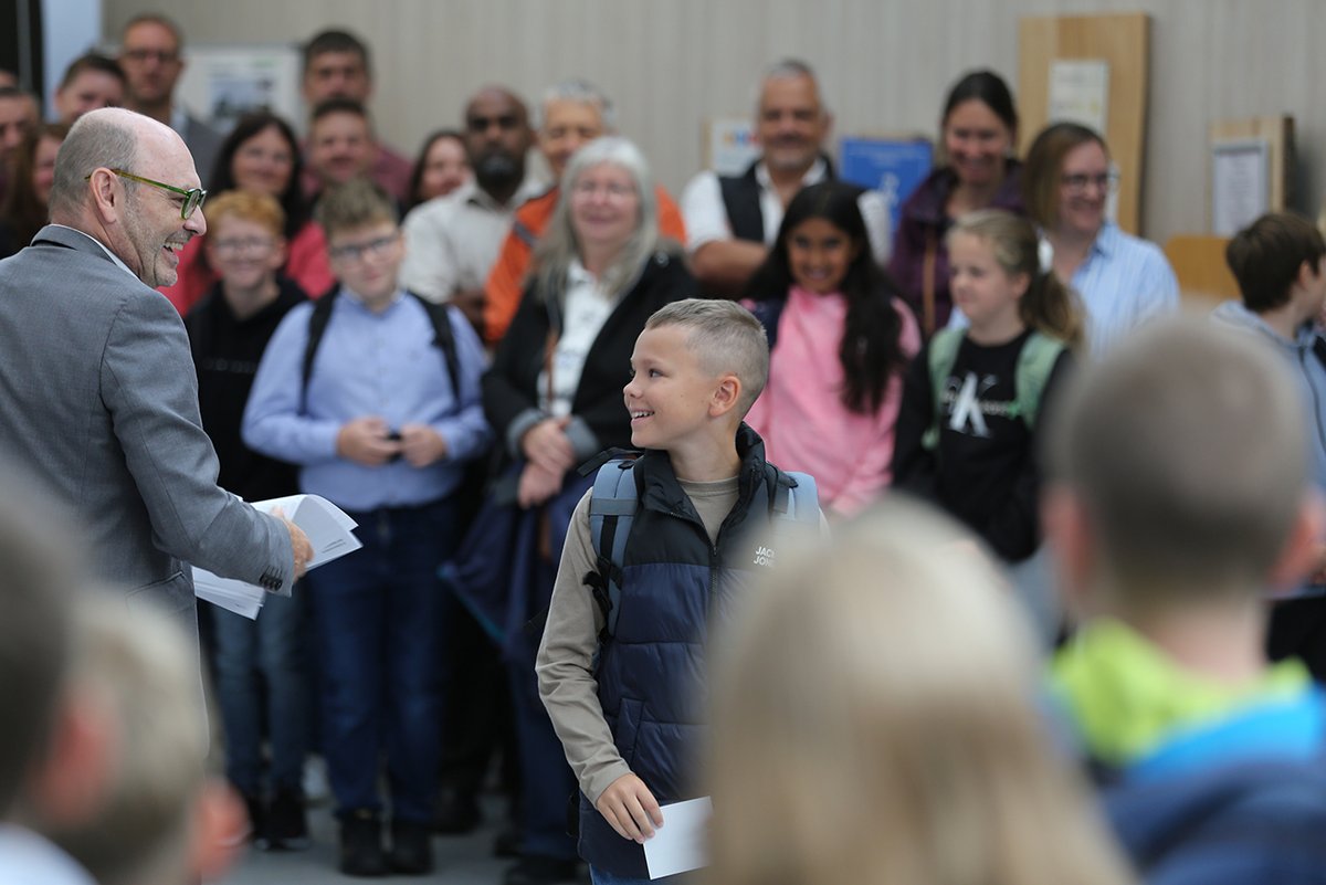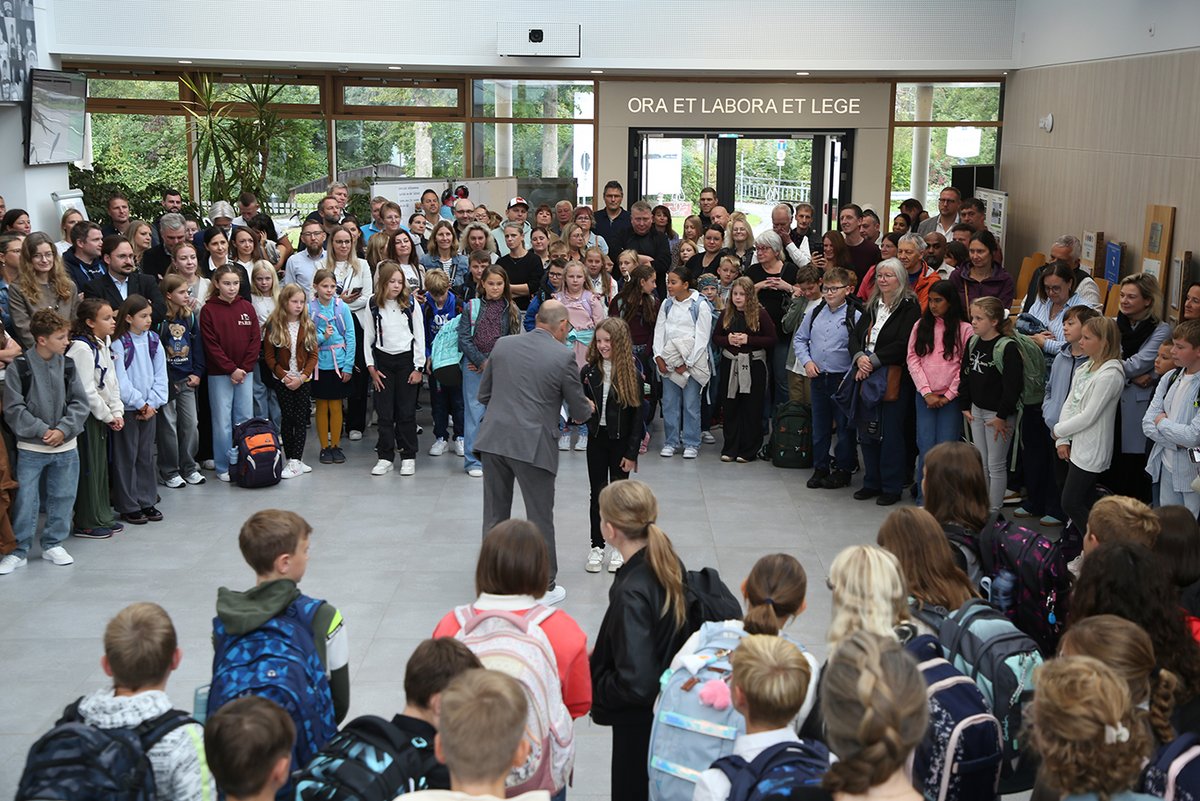 Nach der Klassenbildung gingen die neuen „Fünften“ in ihre Räume. Die Unterrichtsräume sind im Hauptgebäude mit moderner Technik ausgestattet: mit interaktiven White-Boards, Dokumentenkamera, WLAN-Anschluss und drahtloser Übertragungsmöglichkeit in allen Klassenzimmern – mit allem, was man für einen modernen, effektiven und interessanten Unterricht braucht.