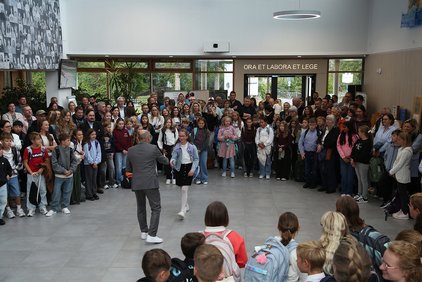 Die Nachfrage nach dem St.-Gotthard-Gymnasium bleibt wie schon in den letzten Jahren weiter ungebrochen hoch: 89 Schülerinnen und Schüler traten nun in die 5. Jahrgangsstufe in Niederalteich ein. Bei der Begrüßung in der Aula wünscht Schulleiter Johann Lummer bei der persönlichen Begrüßung allen Neuanfängern ein gutes Hineinwachsen in die Schulgemeinschaft. Anschließend begrüßte fr. Vinzenz Proß OSB als Vertreter des Schulträgers die neuen Schülerinnen und Schüler und ihre Eltern. Dabei ging er kurz auf die Bedeutung der Schule für die die gymnasiale Ausbildung wie auch die Persönlichkeitsentwicklung ein. Er wünscht Schülern wie Eltern ein gutes, gesegnetes Schuljahr mit möglichst vielen positiven Erfahrungen. Die aktuellen Schülersprecher, Theresa Kribitznek, Johanna Gsödl und Xaver Eichinger begrüßten die Neuanfänger ebenso sehr herzlich.