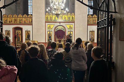 Frater Vinzenz und Frater David boten für jede Klasse Führungen durch die Klosterräume, den Klausurgarten und die byzantinische Kirche an.
