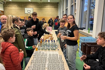 Zum Schluss erwartete uns ein von den Tutoren vorbereiteter Stehempfang in der Alten Turnhalle, bei welchem nach einer Ansprache des Schulleiters Herrn Lummer die Sieger der Schulhausrallye von den Tutoren gekürt wurden. Als ersten Preis bekamen die beiden Gewinner einen Gutschein aus der Schulkleidungskollektion.