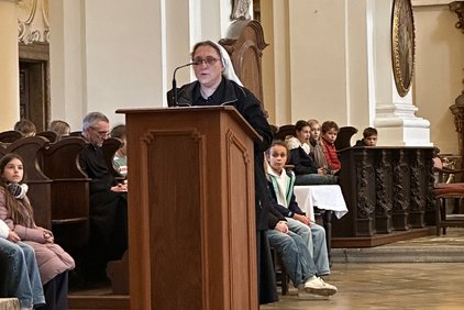 Um 17.30 Uhr durften alle Kinder mit ihren Eltern ein meditatives und spirituelles Klangerlebnis in der Basilika genießen: Zwischen Herrn Hackls Orgelmusik las Sr. Gratia informative und besinnliche Texte vor. Frater Vinzenz betete abschließend mit uns ein Vater Unser und entließ die Gemeinschaft mit dem Segen.