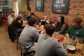 Ein gemeinsames, traditionelles elsässisches Flammkuchenessen durfte ebenfalls nicht fehlen in einem der städtischen Restaurants namens „Flam’s“. Hier machten wir allerdings Bekanntschaft mit einer eher weniger gastfreundlichen Seite des Elsass: unsere Gruppe kam 10 Minuten zu früh, also musste man noch draußen bleiben. Speisekarten wurden auch erstmal vor dem Restaurant überreicht - man wäre ja eine „sehr große“ Gruppe. Drinnen wurde uns dann ein höchst kompliziertes Menü „empfohlen“ (oder eher aufgezwungen), über dessen Sinnhaftigkeit Frau Rollmann und Herr Seitz bis zum heutigen Tag noch rätseln. A bissal schlecht organisiert, aber die Flammkuchen selbst haben etwas hergemacht und im Nachhinein betrachtet war es doch auch recht witzig…