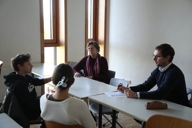 Nach dem Vortrag teilten sich die Teilnehmerinnen und Teilnehmer in Jahrgangsgruppen auf, um eigene Erfahrungen zum Thema „Lernen“ auszutauschen. In der Aula, im Gotthardsaal und in weiteren Räumen der Schule wurden Ideen gesammelt, wie selbstorganisiertes Lernen in den verschiedenen Stufen umgesetzt und weiterentwickelt werden kann. Nach einer Kaffeepause trafen sich alle Gruppen zu einem gemeinsamen Plenum, in dem zentrale Ergebnisse vorgestellt wurden.