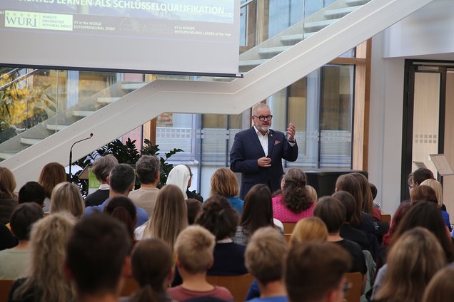 Die heutige Welt lasse sich durch das Akronym VUCA charakterisieren, das sich aus Volatilität, Unsicherheit, Komplexität und Ambiguität zusammensetzt. Das weltweite Wissen verdopple sich mittlerweile alle acht Monate. Als Antwort darauf brauche es neue Lernformen nach dem Grundsatz, dass Wissen heute nicht mehr das ist, was man einmal gelernt hat, sondern das, was man sich immer wieder neu erschließen kann.