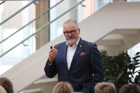 Schmieder stellte dann aktuelle Forschungsergebnisse zum Lernen vor – unter anderem die bekannte Vergessenskurve nach Ebbinghaus. Effektives Lernen, so führte er aus, funktioniere durch Wiederholung, Anwendung und kurze Lernzyklen. Lernvideos etwa sollten nicht länger als zehn Minuten sein, um Konzentration und Motivation zu fördern. „Make the classroom count“ sei dabei ein wesentliches Prinzip. Demnach müsse der Unterricht Anwendungserlebnisse schaffen, die Wissen verankern und Lust auf mehr erzeugen.