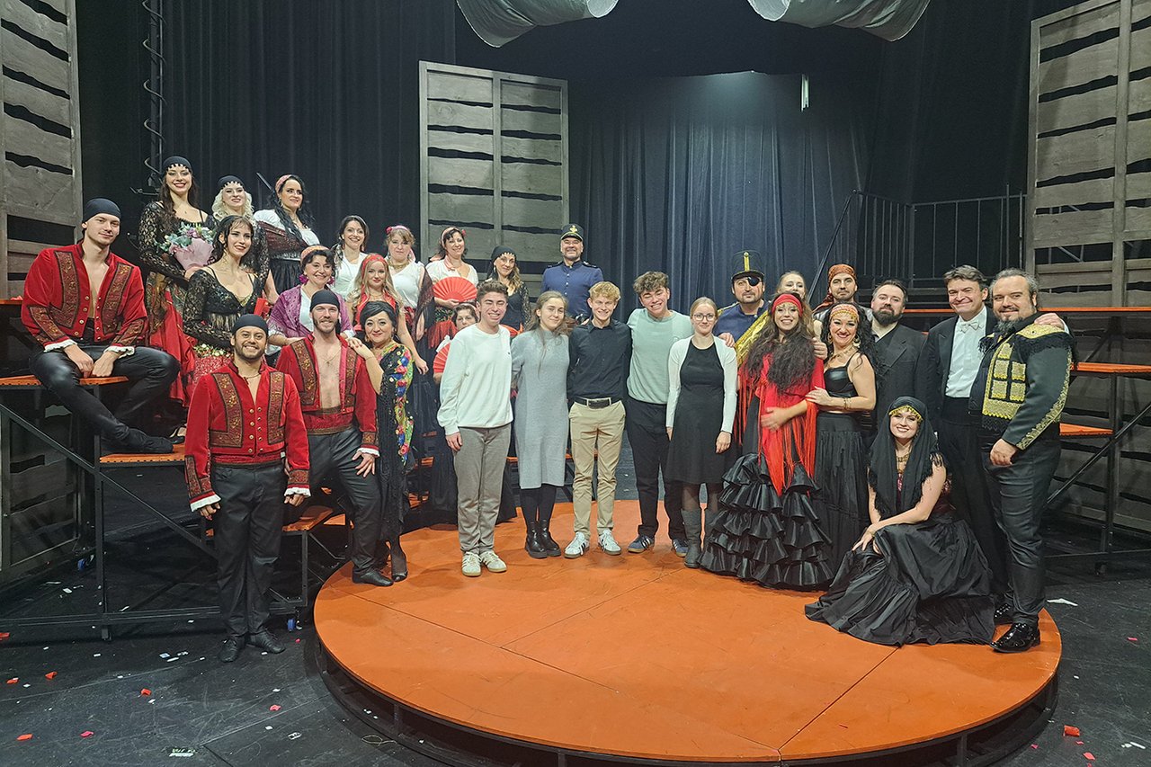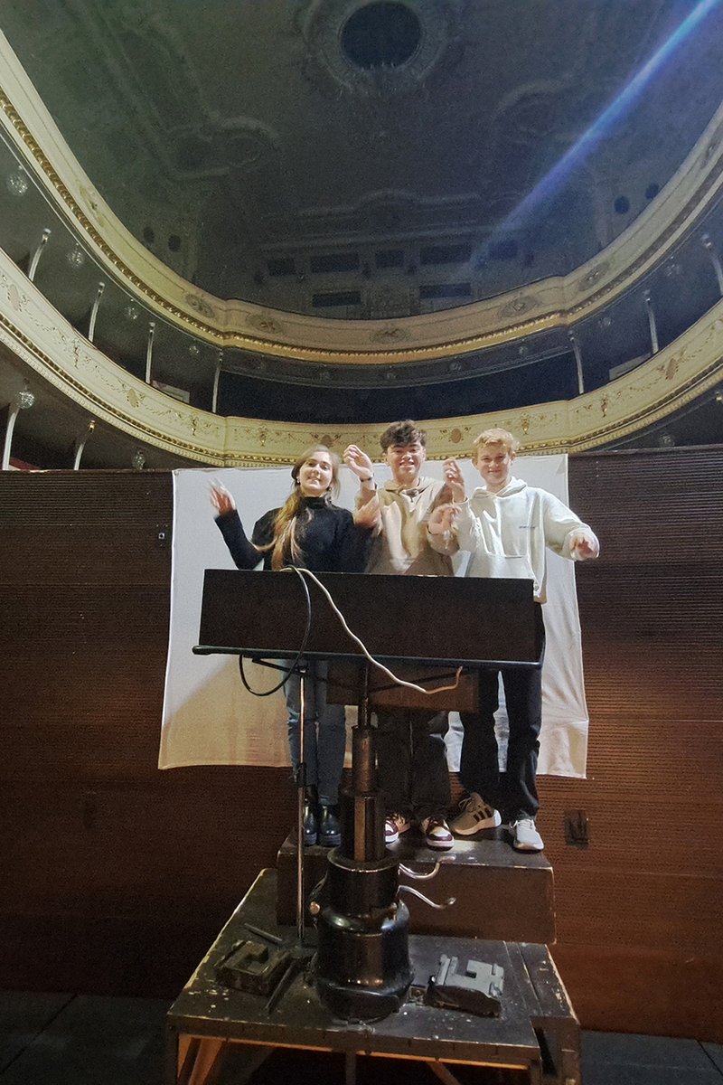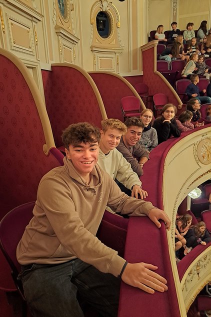Als besondere Ehrerbietung für den Besuch aus Deutschland wartete das komplette Ensemble aus Sängern, Tänzern und dem Dirigenten nach beiden Vorstellungen auf der Bühne für ein Fotoshooting. Nach der Aufführung des Mrazìk konnten die Schülerinnen und Schüler noch den weit verzweigten Backstagebereich des Theaters erkunden.