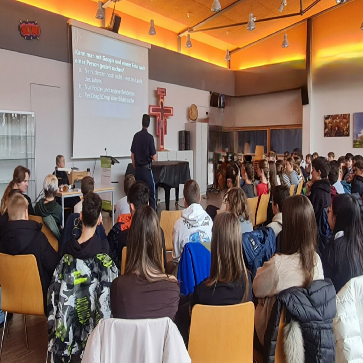 Im November 2025 fand am St.-Gotthard-Gymnasium für die 7. und 8. Klassen eine essenzielle Präventionsveranstaltung zum Thema „Handy und Internet“ statt. Ziel der Veranstaltung war es, die Schülerinnen und Schüler umfassend über die Chancen, aber auch die Gefahren der digitalen Welt aufzuklären. Nach der Begrüßung durch Schulleiter Herr Lummer übernahmen die Experten der Polizei Deggendorf, Polizeihauptmeister Grimps und Polizeiobermeisterin Feuchtmeier, die Moderation.