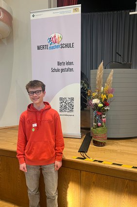 Unser Schüler Paul Duschl aus der Klasse 8b nahm in diesem Schuljahr an der Wertebotschafter-Ausbildung des Bayerischen Kultusministeriums teil. Begleitet wurde er dabei von seinem Betreuungslehrer Herrn Paßreiter.