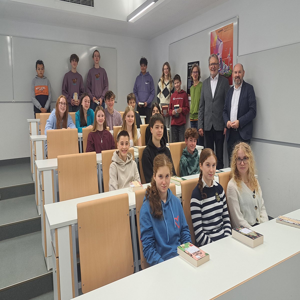 Mit einem Buchpreis wurden Schülerinnen und Schüler ausgezeichnet, die in den Jahrgangsstufentests am Anfang des Schuljahres in den Fächern Deutsch, Mathematik und Englisch die besten Leistungen erzielt hatten.