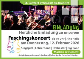 Herzliche Einladung zum Faschingskonzert am Unsinnigen Donnerstag, 12.2., in der Alten Turnhalle. Beginn: 19 Uhr