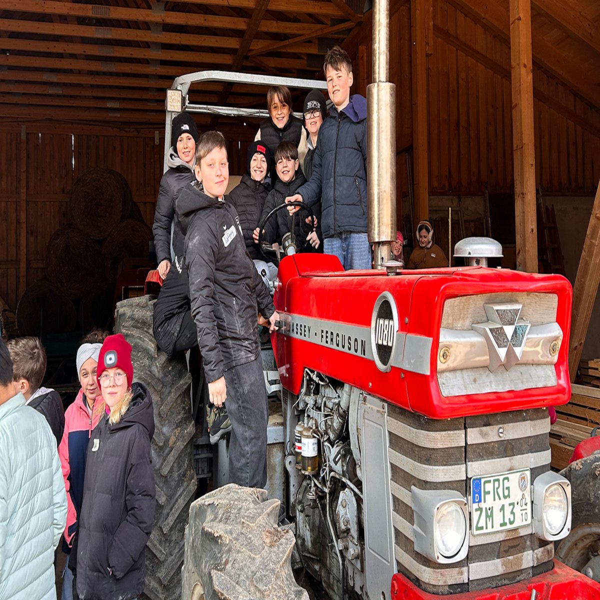 Auf dem Erlebnisbauernhof lernten sie viel über Landmaschinen, den Anbau von Getreide und Kartoffeln, sowie die Haltung von Milchkühen. Besonders begeistert waren sie von den Kälbern, sowie den Einblicken in die ökologische Landwirtschaft.