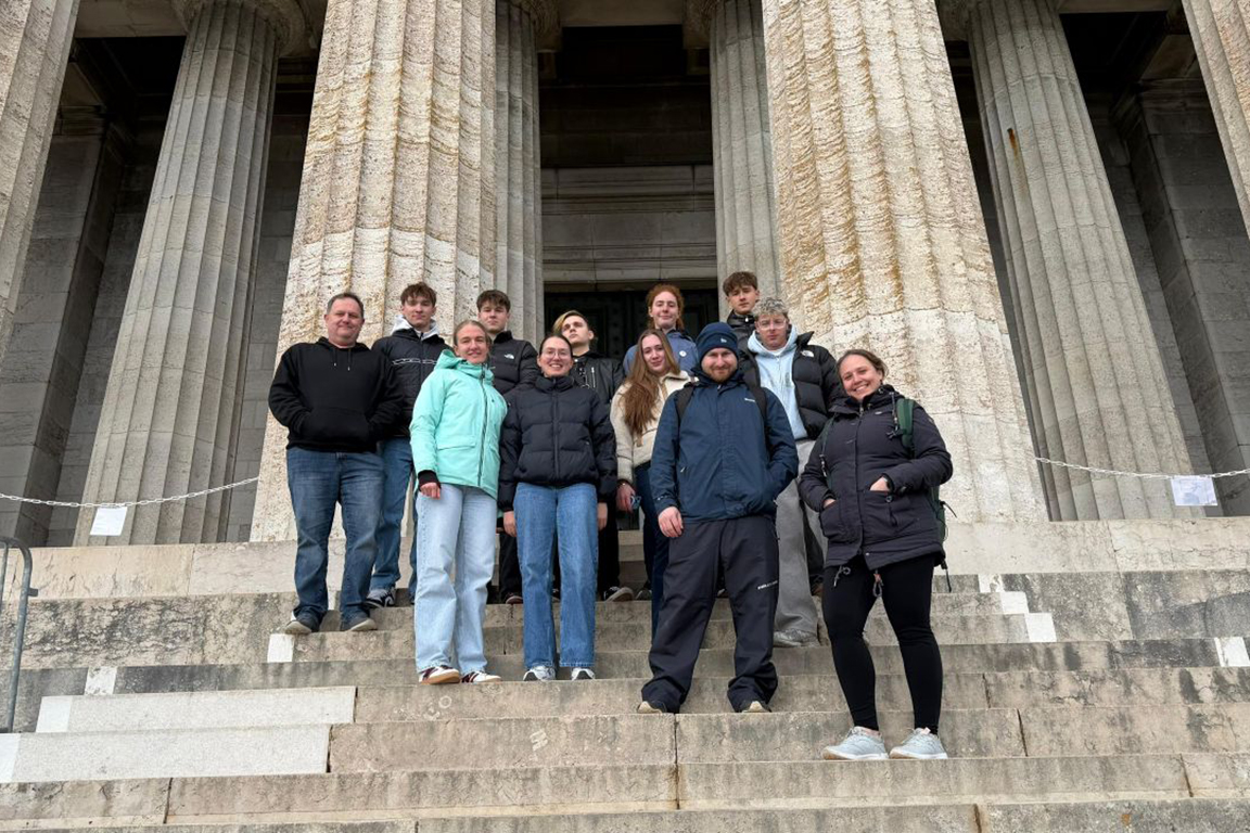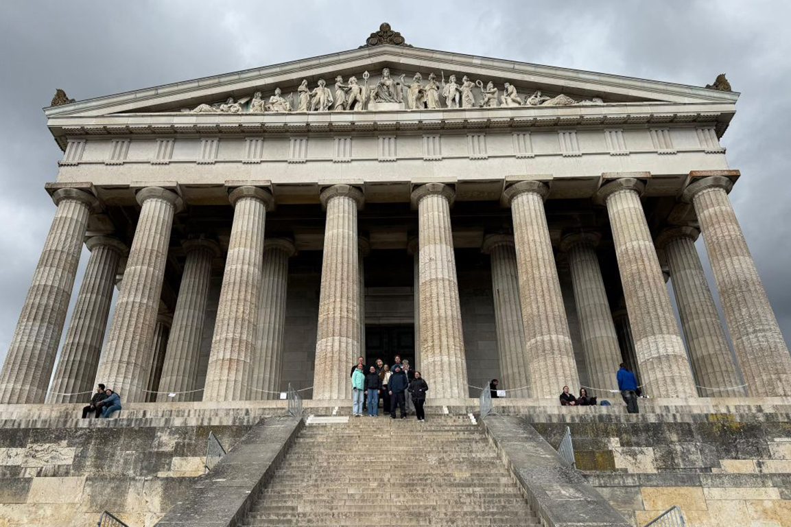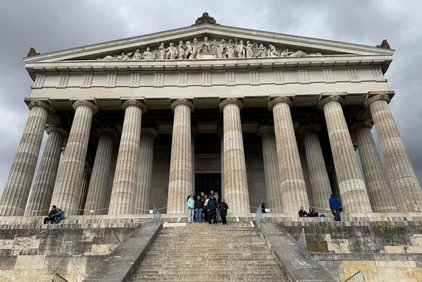 Der Donnerstag bescherte uns, trotz leider kaltem und trübem Wetter, einen sehr schönen und höchst informativen Tagesausflug in die historische Altstadt von Regensburg. Nach einer sehr anschaulichen und lebendig gestalteten Stadtführung durch Herrn Fuchs konnten die Schülerinnen und Schüler die Altstadt auf eigene Faust erkunden, bevor auf dem Rückweg noch ein Besuch der Walhalla anstand. Pünktlich zum Gruppenfoto auf den Stufen dieses beeindruckenden Bauwerks zeigte sich dann auch die Sonne zum Abschluss dieses gelungenen Tages.