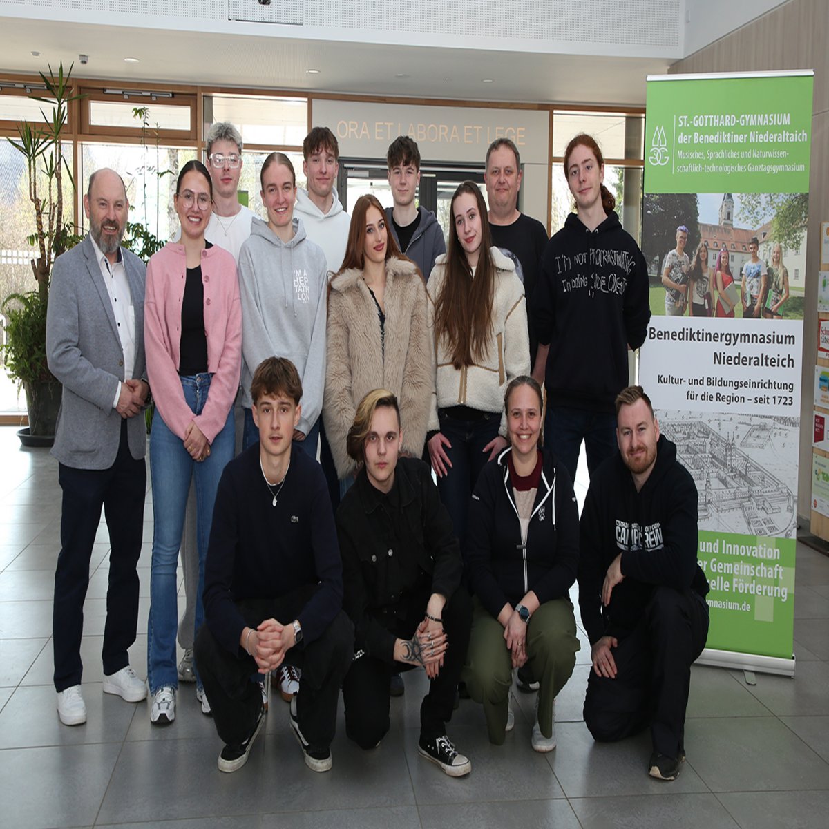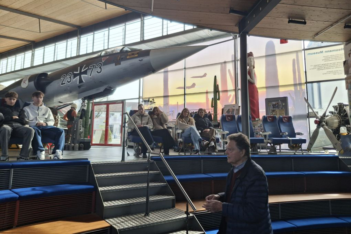 Der Dienstag stand im Zeichen eines Besuchs des Gerhard-Neumann-Museums in Niederalteich. Wie es der Zufall so haben wollte, war tatsächlich mit Herrn Mast ein ehemaliger Pilot der F104, meistens „Starfighter“ genannt, anwesend, der spontan von seinen Erfahrungen mit diesem imposanten, aber auch für Piloten herausfordernden Flugzeugs, berichten konnte. So schilderte er auch anhand eines originalen Schleudersitzes, wie er selbst in höchster Bedrängnis durch den Schleudersitz sein Leben retten konnte. Am Nachmittag arbeiteten die Schüler aus beiden Ländern an der Fertigstellung ihrer Projekte, die im Oktober 2025 in Olmütz begonnen wurden und sie erstellten zusammen eine Präsentation für die Schüler der 9. und 10. Klassen des SGG, um die Stadt Olmütz und das dortige Gymnasium vorzustellen.
