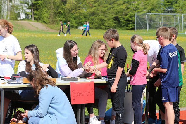 Zu bewältigen galt es für die Läuferinnen und Läufer der Klassen 5 bis 9 eine 400 Meter lange Strecke. Unter dem eifrigen Anfeuern der Klasse 9b kamen alle Teilnehmer ins Ziel. Stolz sind die Schülerinnen und Schüler, dass bei dieser gemeinschaftsfördernden Aktion knapp 6000 Euro „erlaufen“ werden konnten.