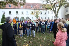 Am 21.10.2022 fand der Tag der Begegnung mit dem Konvent für die fünften Klassen statt. Die Tutoren und Tutorinnen gestalteten das Programm mit Hilfe der Leitung des Teams, Frau Büttner. Große Unterstützung kam auch von Seiten des Klosters. Von 13:45-14:30 Uhr wurde den Klassen von den jeweiligen Tutoren die Regeln der Schulhausralley und der Ablauf des restlichen Tages erklärt. Ab 14:30-16:00 Uhr hatten die Kinder Zeit, das Schulgelände zu erkunden und den Fragebogen über das SGG auszufüllen, den sich die Tutoren im Vorfeld überlegt hatten. Um 16:30 Uhr wurden die fünften Klassen von Frater Vinzenz und Frater Benedikt in zwei Gruppen im Kloster herumgeführt und konnten ihnen Fragen dazu stellen. Etwas später kamen die Eltern der anwesenden Schüler dazu und gingen zusammen mit ihren Kindern zum Gebet in der Basilika. Ab 18:00 Uhr fand abschließend noch ein Stehempfang in der alten Turnhalle statt. Den Aufbau und die Vorbereitung der Verpflegung übernahmen ab 13.45 Uhr die Tutoren und Tutorinnen der 6. Klassen. Dabei wurden alle sehr herzlich von dem Schulleiter Herrn Lummer begrüßt. Außerdem fand noch die Siegerehrung der diesjährigen Schulhausralley statt. Mit zahlreichen Gesprächen unter den Eltern und Schülern und Schülerinnen ging der Abend um 19 Uhr zu Ende.