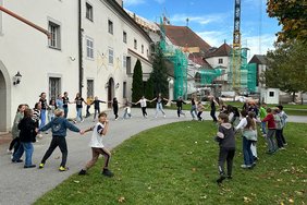 Im Anschluss an die Rallye teilten sich die Klassen in Gruppen auf und begaben sich zu zwei interessanten Klosterführungen, begleitet durch Frater Vinzenz und Frater David. Während eine Gruppe diese miterleben durfte, spielte die andere Gruppe mit den Tutorinnen ein paar lustige Spiele im Klosterinnenhof. Bei der Führung lernten die Schüler viel über die Geschichte und die Traditionen des Klosters Niederalteich.