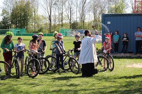Zum unfallfreien Start der Mountainbike – Saison hat Pater Ambrosius die Mountainbikes gesegnet.