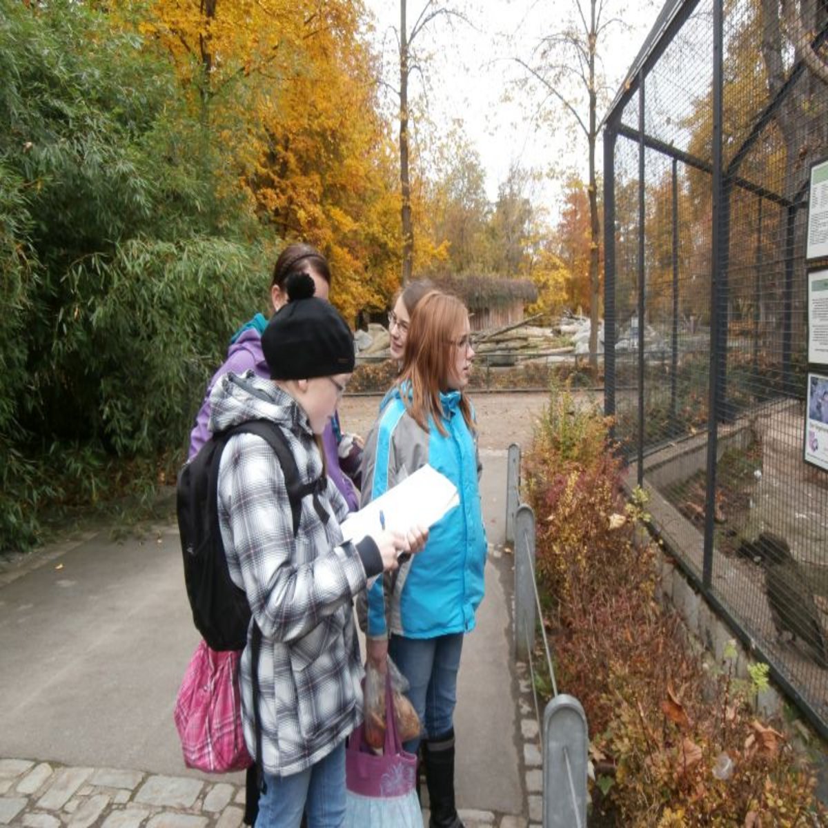 Angeleitet wurden die Schülerinnen und Schüler auf ihrer Entdeckungsreise durch den Straubinger Zoo von fünf Lehrkräften, die ihnen laufend mit Rat und Tat zur Hilfe standen und gelegentlich auch einem der verirrten ‚Schäfchen' den richtigen Weg zur nächsten Station der Zoorally wiesen, denn das Ziel der Schüler war, ihren von den Biologie-Lehrern entworfenen Aufgabenkatalog möglichst gut zu erfüllen. Viele schwierige Fragen fanden sich darin: Wie genau fliegt ein Vogel? Wo sitzen beim Karpfen die Flossen? Warum kann die Schneeeule fast lautlos fliegen? Und: Schleicht „Bruno" der Braunbär, tatsächlich auf leisen Sohlen durch sein Gehege oder geht er eher auf Zehenspitzen? Wer die Antworten herausgefunden hatte, notierte sie rasch auf dem Rally-Laufzettel und bei mancher Antwort entbrannte eine heiße Diskussion zwischen den eifrigen Schülern. Welch ein Glück, dass selbst der gute Petrus seine Hand über den Ausflug hielt, denn entgegen allen Unkenrufen kamen alle trocken nach Hause.