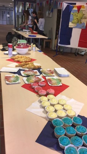 Zugunsten dieses Austausches wurden in der 1. und 2. Pause französische Köstlichkeiten wie Crêpes, Waffeln, Croissants und Cupcakes in den Farben der französischen Flagge angeboten.