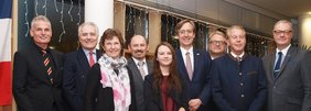 Nach einem Grußwort von Anton May, Schulleiter am Gastgeber-Gymnasium Maria Ward Nürnberg, in der er auch die Betroffenheit seiner Schulgemeinschaft anlässlich der Attentate von Paris ausdrückte, hielt Dr. Andreas Hatzung, Direktor des Katholischen Schulwerks in Bayern, seine Ansprache. Die tiefe Verbundenheit mit unseren französischen Partnern thematisierte er dabei in feinsinniger Weise mit dem Lied „Le coeur de Paris. Schirmherr der Preisverleihung, Jean-Claude Brunet, Generalkonsul der französischen Republik in München, stellte die vielfältigen Verbindungen zwischen Frankreich und Bayern in den Mittelpunkte seines Grußwortes und dankte für die vielen Signale des Mitgefühls von deutscher und bayerischer Seite anlässlich der jüngsten Terrorakte und verwies auch auf die französische Unterstützung Deutschlands nach dem Germanwings-Absturz. Claude Trudelle, Generaldelegierter der Regierung von Québec in München, sprach über die Beziehungen zwischen Bayern und Quebec und lobte das Austauschprojekt von vier katholischen Schulen Bayerns mit der katholischen Privatschule Villa Sainte-Marcelline in Montréal.