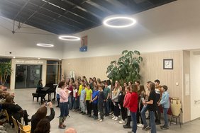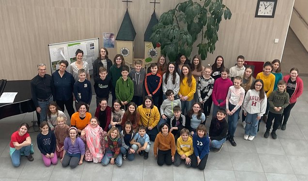 Am Faschingswochenende besuchte der Kinderchor die Iuvenes Cantores des St.-Gotthard-Gymnasiums zu einer gemeinsamen Proben- und Erlebnisphase. Die Ergebnisse der musikalischen Begegnung stellten die beiden Chöre unter der Leitung von Astrid Krammer, Judit Morvay und Bernhard Falk am Samstagabend in einem öffentlichen Werkstattkonzert vor. Am Sonntagmorgen ging es lustig zu beim Offenen Singen, in dem das Publikum die Rolle der Aufführenden übernahm, unterstützt durch die stimmstarken Wiener und Niederalteicher Kinder.