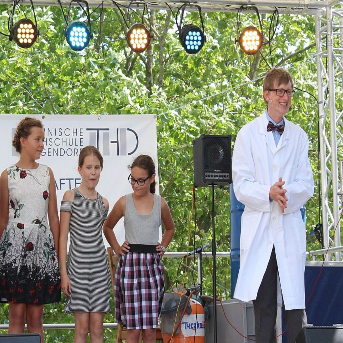 Die Luftpumpe wurde von den Sportlehrern „entwendet“. Es war ein steiniger Weg, aber jede Gruppe brachte ihre Rakete zum Fliegen. Die Ergebnisse wurden zur TH gebracht und die Gruppe am Tag der offenen Tür in Deggendorf mit Urkunden und kleinen Preisen belohnt. Ein Highlight der Veranstaltung war auch ein Bühnenauftritt bei den „Physikanten“, einer kleinen Wissenschaftsshow.