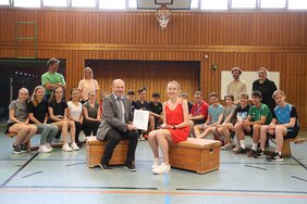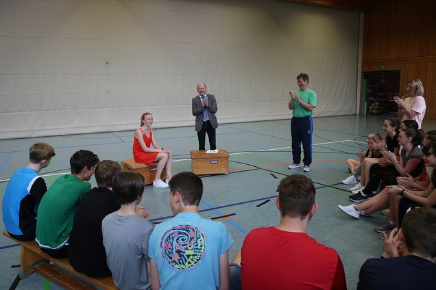 Viele Fragen hatte die erfolgreiche Leichtathletin dann noch aus der Schülerschaft zu beantworten, ehe sie, mit einem Powerbank beschenkt, verabschiedet wurde.