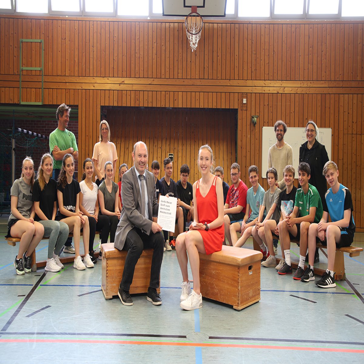 So fanden sich die Schüler der neunten Klasse, der „Sportstudio“ – Moderator Johann Lummer und einige Kollegen in der Turnhalle ein.